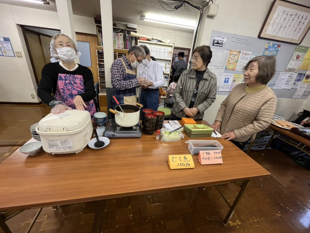 食べ物はおにぎり、豚汁を始め、どて煮丼、フランクフルト。手作りのおかずやデザート等、飲み物も。売る側も買う側も一生懸命 また、別コーナーには、洋服、小物、キッズ用品など盛りだくさんの品物が並びました。